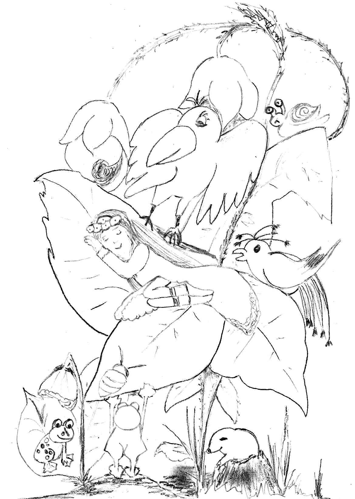 krok, immer näher kam es, bis der Vogel Krok das Mädchen